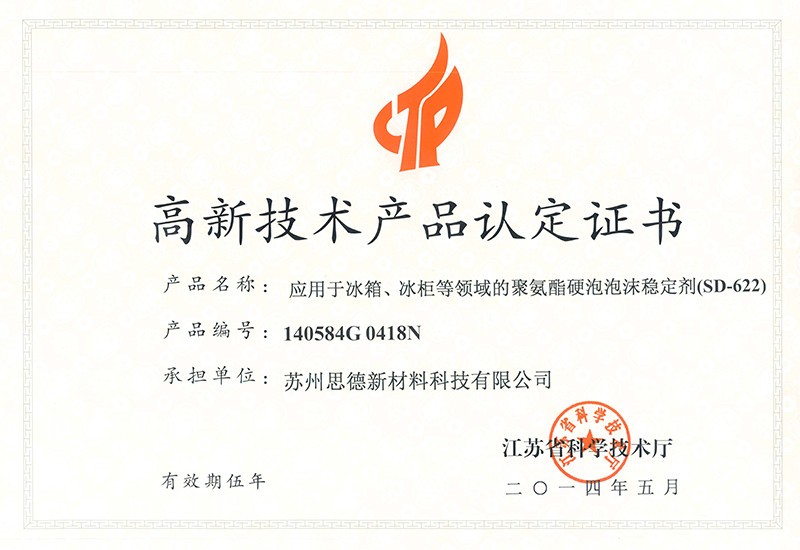 公司目前在售產(chǎn)品主要有聚氨酯硬泡用有機(jī)硅泡沫穩(wěn)定劑系列產(chǎn)品、聚氨酯軟泡用有機(jī)硅泡沫穩(wěn)定劑系列產(chǎn)品、聚氨酯OCF用有機(jī)硅泡沫穩(wěn)定劑系列產(chǎn)品、聚氨酯高回彈用有機(jī)硅泡沫穩(wěn)定劑系列產(chǎn)品、聚氨酯慢回彈用有機(jī)硅泡沫穩(wěn)定劑系列產(chǎn)品,其中有20多個(gè)產(chǎn)品被認(rèn)定為江蘇省高新技術(shù)產(chǎn)品。